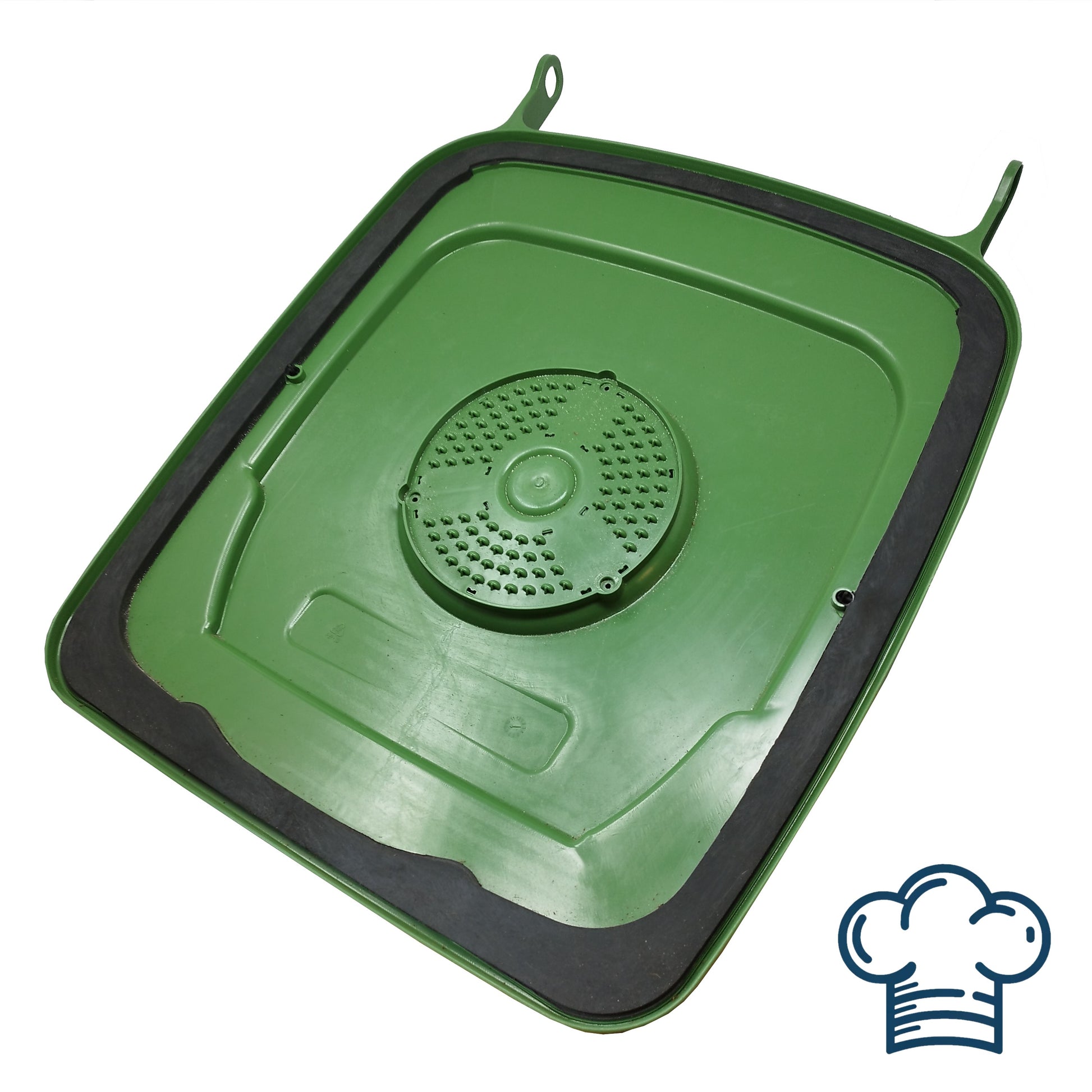 Dank seines Biofilters verhindert der Gastro-Wechseldeckel effektiv Madenbefall, blockiert unangenehme Gerüche und hält Ungeziefer fern – eine unverzichtbare Lösung für saubere, hygienische Abfallentsorgung.